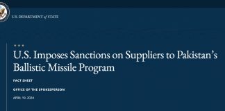 Washington(TNS) : U.S. Imposes Sanctions on Suppliers to Pakistan’s Ballistic Missile...