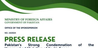 Islamabad(TNS): Pakistan’s Strong Condemnation of the Unprovoked Violation of its Air...