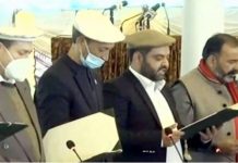 Gilgit-Baltistan: Dec 02, 2020 (TNS): Gilgit-Baltistan Governor Raja Jalal Husain Maqpoon administered the oath to the cabinet members at a ceremony in Gilgit today.