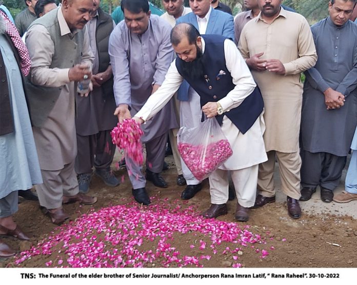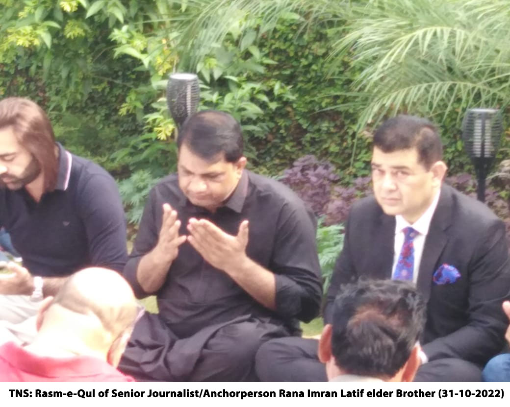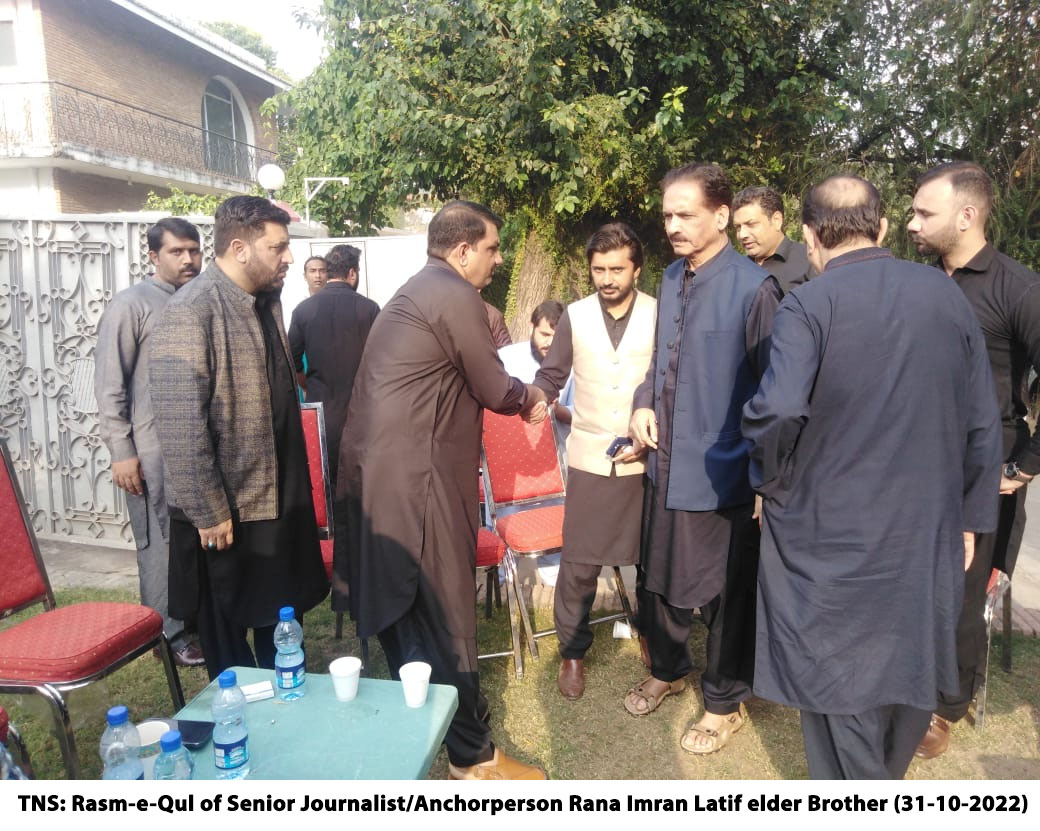 It is with great sadness that the elder brother of Senior Journalist/Anchor Person Rana Imran Latif named Rana Raheel died yesterday on the 30th October 2022, and his funeral was held After Namaz e Asar 30 October 2022 at Masjid Al- Furqan, Sector E7 Islamabad.