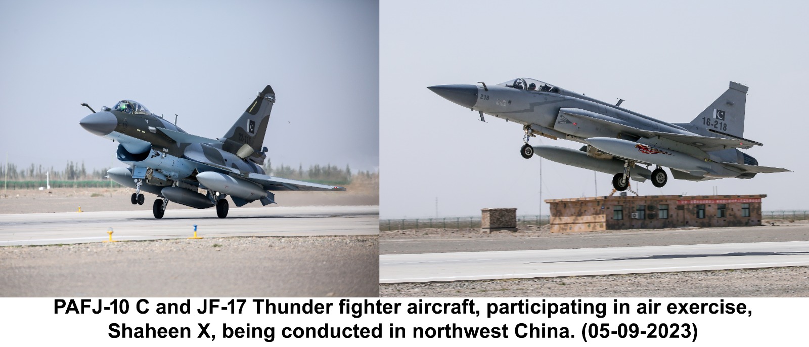 05 September, 2023: The Sino-Pak joint annual air exercise Shaheen-X has commenced in the Jiuquan and Yinchuan cities of Northwest China. PAF’s lead fighter aircraft J-10 C and JF-17 are participating in the exercise along with air and ground crew.