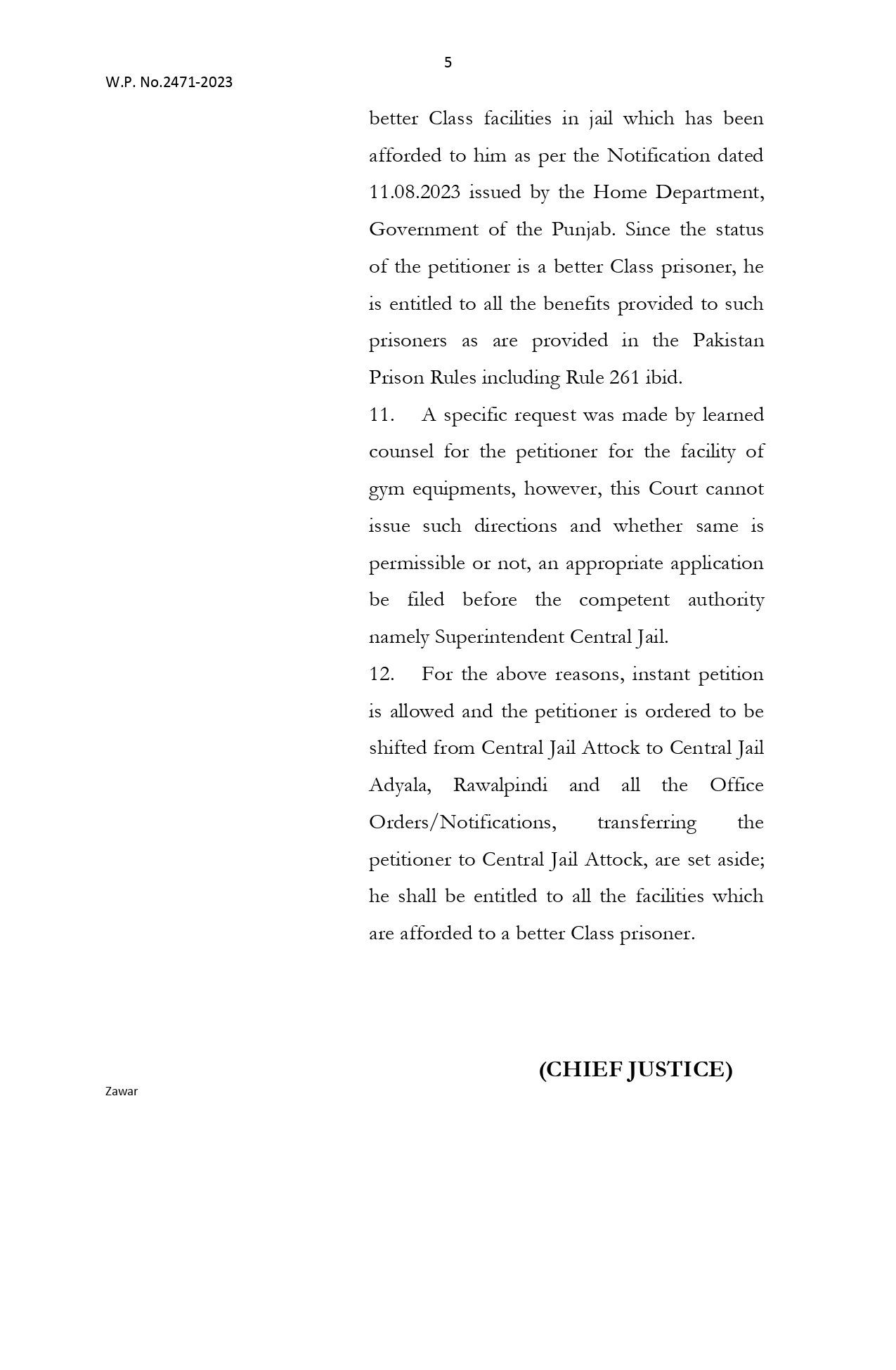 Judge Abual Hasnat Zulqarnain conducted the hearing of the case at the Attock jail.