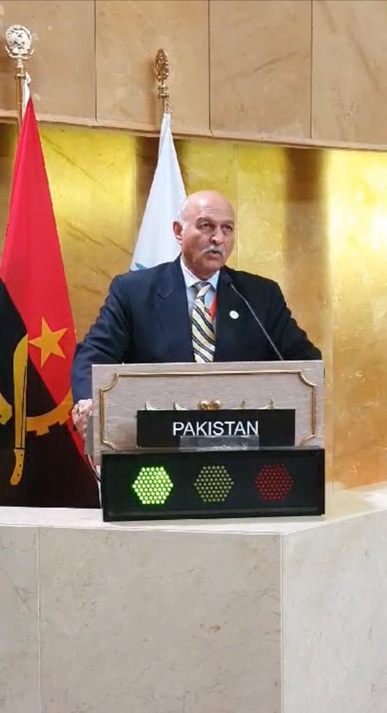 Luanda, 26 October: Senator Mushahid Hussain, Leader of Pakistan Parliamentary delegation to the annual conference of the Inter Parliamentary Union (IPU) has forcefully condemned Israeli crimes against humanity against the Palestinians and accused its Western supporters of ‘hypocrisy and double standards’. He was addressing the general assembly of the IPU, where he urged legislation to counter Islamophobia as it was divisive, racist and bred violence against Muslims.