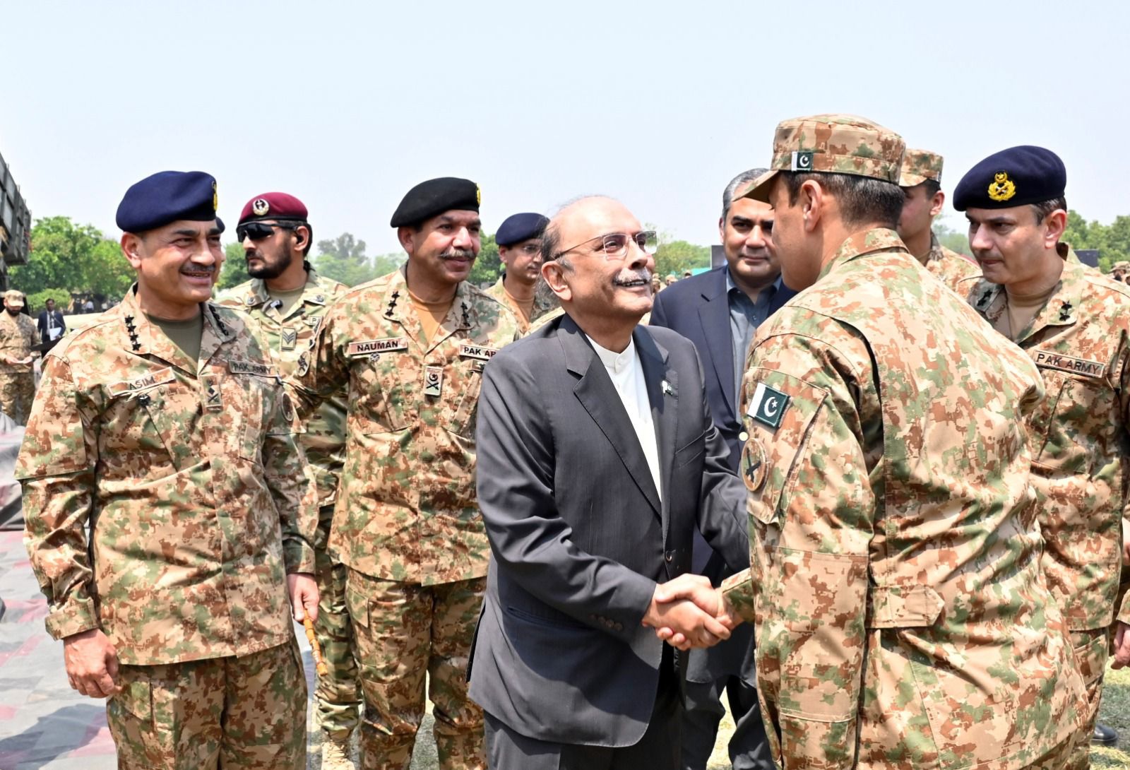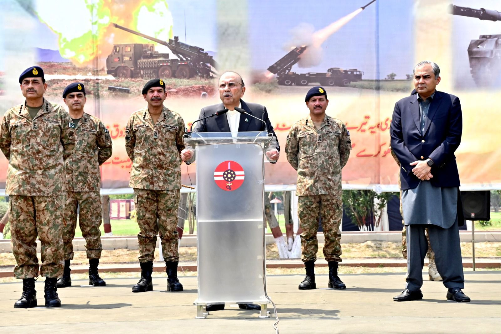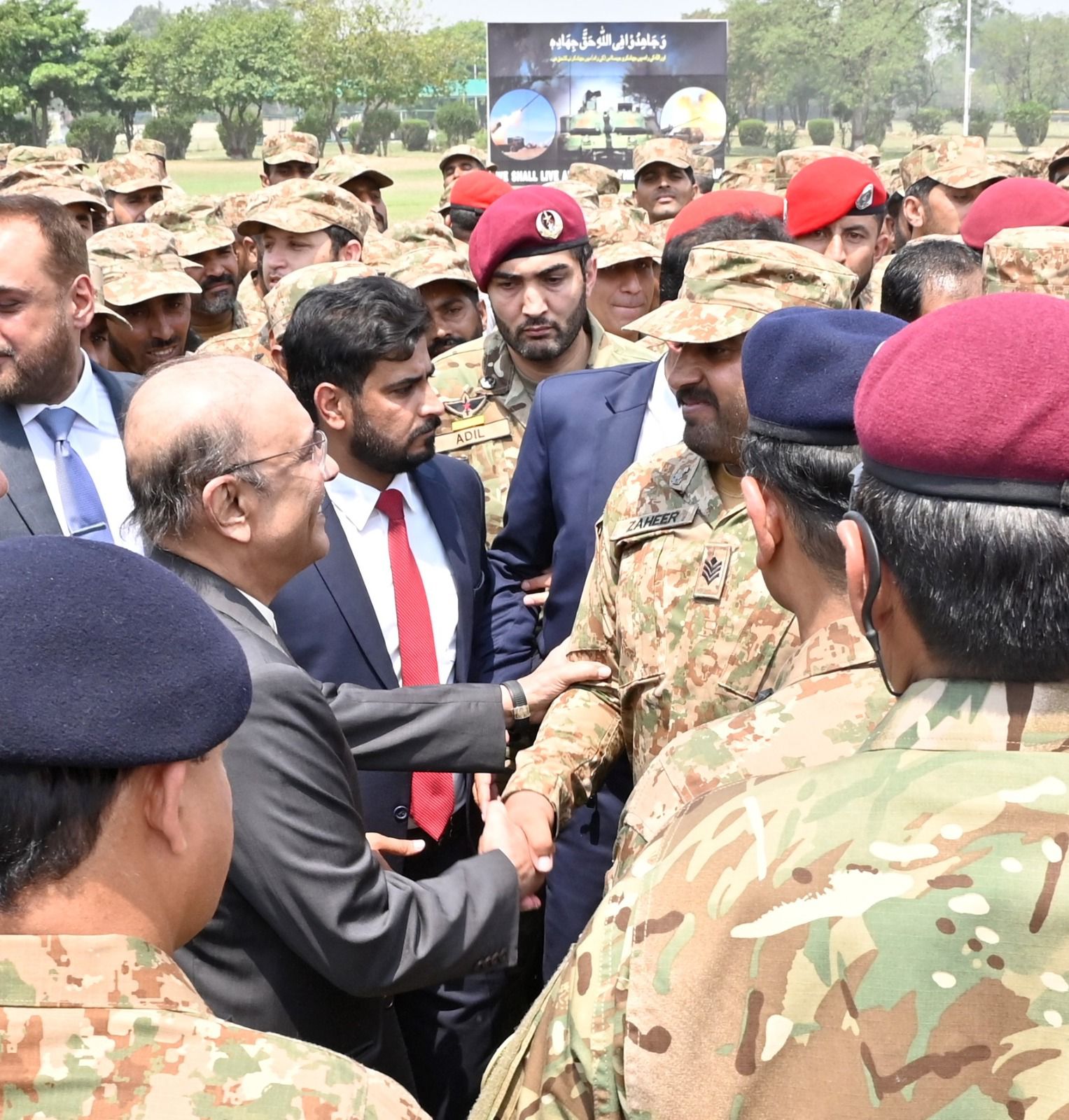 During his interaction with officers and troops, the President commended their exemplary morale, combat readiness, and devotion to duty. He extended heartfelt congratulations on the successful culmination of Operation Bunyan-um-Marsoos, and expressed profound pride in the defenders of the nation, affirming that the people of Pakistan hold their brave soldiers in the highest esteem as the true custodians of national honour and sovereignty.