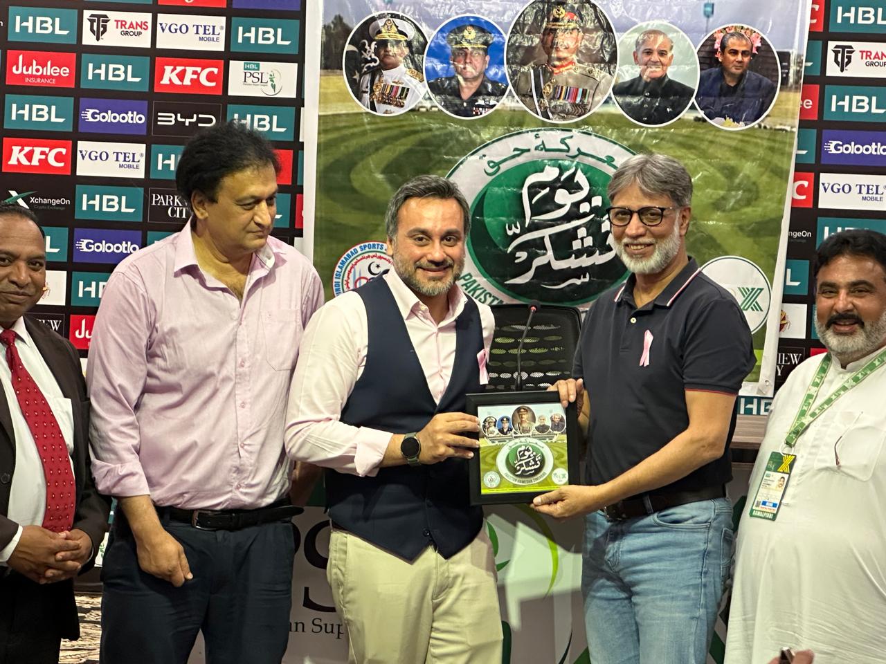 Speaking on the occasion, founder president South Asian Sports Journalists Association Asghar Ali Mubarak paid tribute to the Pakistan Army. He said that the “Operation Banyan Marsus” of the war of truth has proved that the Pakistan Army is the best army in the world. He said that the nexus of Hindus and Jews was defeated with the power of unity. The revival of cricket in Pakistan has proven that Pakistan is a country of cricket lovers. Asghar Ali Mubarak praised the unparalleled strategic intelligence of the Army Chief. He said that honoring those who instill fear in the hearts of enemies is the hallmark of dynamic and resilient nations. In this regard, journalists at a ceremony held at Pindi Cricket Stadium Shakeel Ahmed Awan, Zahid Khan, Farhat Turbi, Saleh Mughal, Tahir Naseer Malik, Asim Riaz, Farhan Hussain, Afzal Javed, Faheem Anwar, Dr. Zahid Awan, Ambrain Ali, Rozeena Ali, Kiran Khan, Maria Rajput, Shakir Abbasi, Arsalan Shirazi, Sohail Raja, Nasir Raja, Hafiz Obaid-ur-Rehman, Ikram Joya, Luqman Shah, Muhammad Ali Jah, Arfa Feroz Zaki, Muhammad Zarif, Ahmed Hammad Siddiqui, Nasir Naqvi, Zulfiqar Baig, Jabbar Faisal, Raja Imran, Ali Dawood, Aqeel Anjum, K Asif, Zeeshan Qayyum, Shahryar Khan, Rana Faheem, Asim Jilani, Owais Abbasi, Abi Bakar, Waqar Ahmed, Mujatba Haider, Shakir Abbasi, M. Owais, Zain Malik, Zahid Farooq Malik, Mudassar Chaudhry, Khalid Chaudhry, Asghar Ali Mubarak, Abdul Mohi Shah. Imran Satti, Hafeez Sultan EMT 1122,