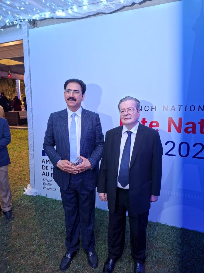 ISLAMABAD (TNS) Group photo of Chairman Pakistan Business Forum Europe Sardar Zahoor Iqbal with French Ambassador Nicolas Gaille on the occasion of France’s National Day
