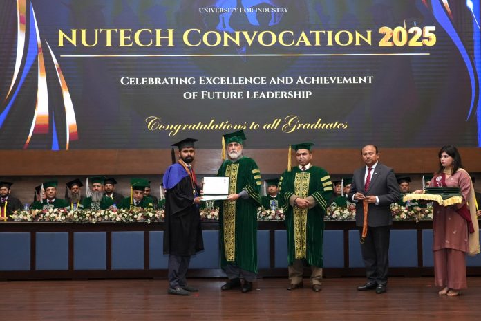 Islamabad (TNS) The National University of Technology (NUTECH) celebrated its 4th Convocation Ceremony at the University Campus, Islamabad, commemorating the academic achievements of its graduating students. The Federal Minister for Science and Technology, Mr. Khalid Hussain Magsi, graced the occasion as the Chief Guest, alongside other dignitaries and the families of the graduating students.