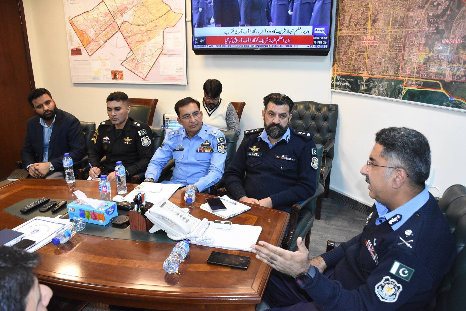 Inspector General of Police (IGP) Islamabad Syed Ali Nasir Rizvi, held an important meeting at the Central Police Office. The meeting was attended by DIG Headquarters Malik Jameel Zafar, AIG Logistics Abdul Haque Umrani, AIG General Syed Inayat Ali Shah, SSP Prisons Ali Akbar, and other senior police officers.During the meeting, a comprehensive strategy was discussed to provide maximum facilitation and security to citizens during the holy month of Ramadan.The IGP Islamabad directed all officers to further strengthen security measures at mosques, imambargahs, commercial centers, Ramadan bazaars, and other important public places.He also emphasized maintaining smooth traffic flow, preventing street crime, increasing patrol duties, and making emergency response more effective.Furthermore, special instructions were issued to ensure proper arrangements for the welfare of police officers and personnel deployed on duty during Sehri and Iftar hours, so that they may perform their responsibilities efficiently. IGP Syed Ali Nasir Rizvi made it clear that the welfare of the force is the top priority and that all available resources should be utilized in this regard. The meeting also included a detailed review of the progress regarding the construction of Islamabad Prison.The SSP Prisons briefed the IGP Islamabad on the ongoing development work. On this occasion, the IGP Islamabad also directed the concerned officers to ensure construction quality, timely completion, and strict adherence to security requirements.In conclusion, he reaffirmed that the protection of citizens lives and property and the provision of a peaceful environment in Islamabad remain the foremost responsibilities of the police, and that all officers and personnel will utilize their professional capabilities to achieve this objective.