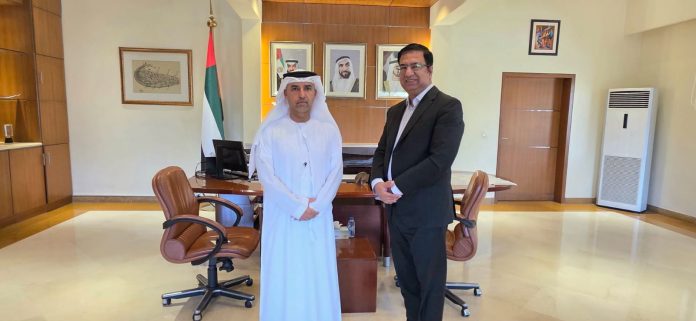 During the meeting, H.E. Salem Mohammed Al Zaabi appreciated Mr. Khalid Taimur Akram’s valuable contributions and continuous efforts in promoting cultural, academic, and diplomatic cooperation between the United Arab Emirates and Pakistan. He also acknowledged Mr. Akram’s role in fostering dialogue and strengthening people-to-people connections through research and institutional engagement.