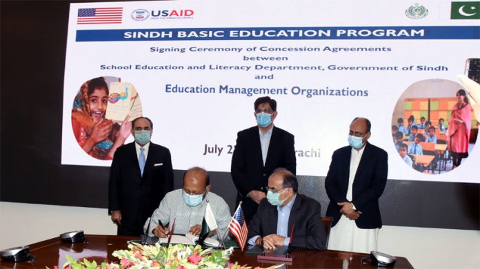 Karachi: July 22, 2020 (TNS): An agreement signing ceremony to hand over 71 schools constructed by USAID in Sindh to private sector held at Chief Minister’s house in Karachi on Wednesday.