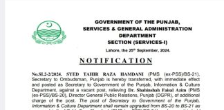 لاہور(ٹی این ایس) سید طاہر رضا ہمدانی سیکرٹری اطلاعات ،غلام صغیر...