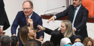 انقرہ(ٹی این ایس) ترک پارلیمنٹ میں اراکین کا جھگڑا، لاتوں اور...