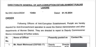 اسلام آباد(ٹی این ایس) ضلع مری میں اینٹی کرپشن افسران کی...