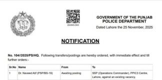لاہور (ٹی این ایس) پنجاب میں ایس ایس پی اور ایس...