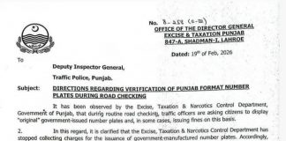 راولپنڈی (ٹی این ایس) پنجاب میں نمبر پلیٹس سے متعلق...
