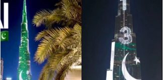 دبئی (ٹی این ایس) یوم آزادی پر برج خلیفہ بھی سبز...