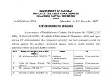 اسلام آباد (ٹی این ایس) ضلعی انتظامیہ اسلام آباد میں تقررو تبادلے