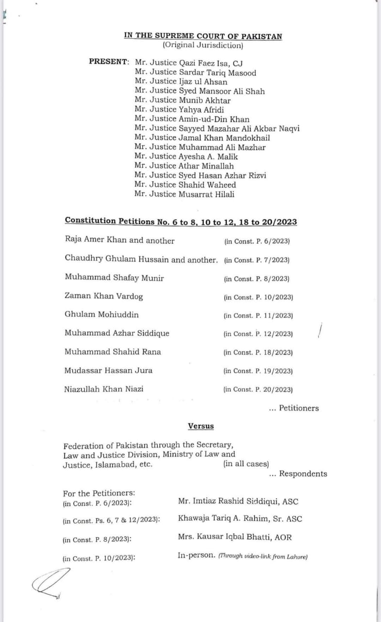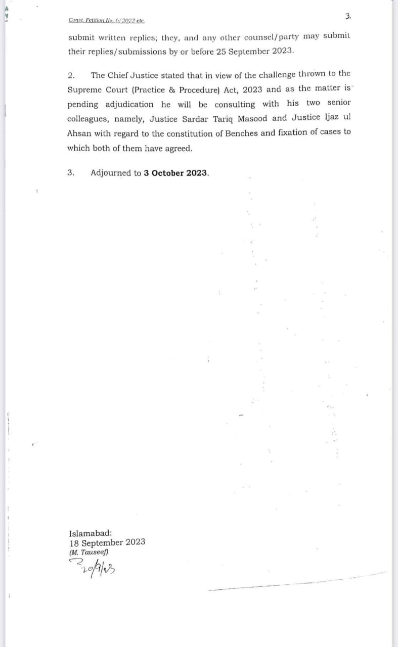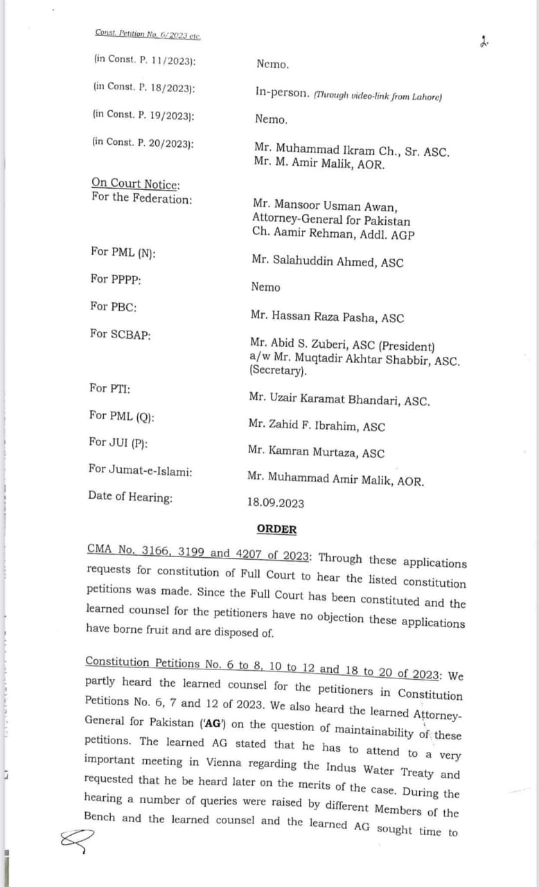 پریکٹس اینڈ پروسیجر کیس کی فل کورٹ میں پہلی سماعت کا تحریری حکم نامہ بغیر ججز کے دستخطوں کے جاری؟