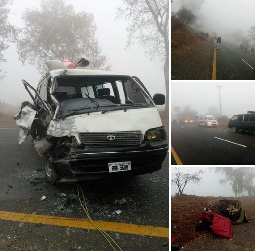 تحصیل جنڈ، رنگلی سٹاپ کے قریب دھند کے باعث 4 گاڑیاں ٹکرا گئیں، 2 افراد زخمی