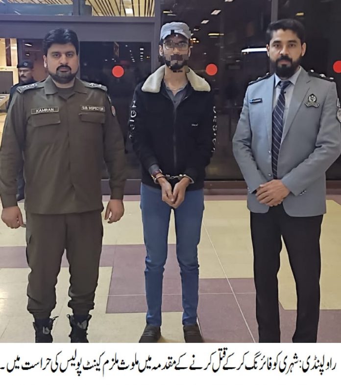 راولپنڈی( )کینٹ پولیس کی اہم کاروائی،شہری کو فائرنگ کرکے قتل کرنے کے مقدمہ میں ملوث ملزم گرفتار، ملزم نے رواں سال کے پہلے روز اپنے ساتھیوں کے ہمراہ شہری حارث کو مال روڈ پر قتل کیا تھا، ملزم قتل کی واردات کے بعد بیرون ملک فرار ہو گیا تھا،راولپنڈی پولیس نے موثر تفتیش کرتے ہوئے ملزم کا نام سٹاپ لسٹ میں درج کروایا تھا،ملزم عمر بیرون ملک سے کراچی ائیرپورٹ پر آیا تو سٹاپ لسٹ میں اندراج کی وجہ سے گرفتار کر لیا گیا۔تفصیلات کے مطابق کینٹ پولیس نے کاروائی کرتے ہوئے شہری کو فائرنگ کر کے قتل کرنے کے مقدمہ میں ملوث ملزم عمر کو گرفتار کر لیا،ملزم نے رواں سال کے پہلے روز اپنے ساتھیوں کے ہمراہ شہری حارث کو مال روڈ پر قتل کیا تھا، ملزم قتل کی واردات کے بعد بیرون ملک فرار ہو گیا تھا، راولپنڈی پولیس نے موثر تفتیش کرتے ہوئے ملزم کا نام سٹاپ لسٹ میں درج کروایا تھا،ملزم عمر بیرون ملک سے کراچی ائیرپورٹ پر آیا تو سٹاپ لسٹ میں اندراج کی وجہ سے گرفتار کر لیا گیا،ملزم کے ساتھیوں کو بھی گرفتار کر کے قانون کے کٹہرے میں کھڑا کیا جائے گا، ایس پی پوٹھوہار ناصر نواز کا کہنا تھا کہ ملزم کو ٹھوس شواہد کے ساتھ چالان کر کے قرار واقعی سزا دلوائی جائے گی، شہریوں کی جان و مال پر حملہ کرنے والے ملزمان قانون کی گرفت سے نہیں بچ سکتے۔