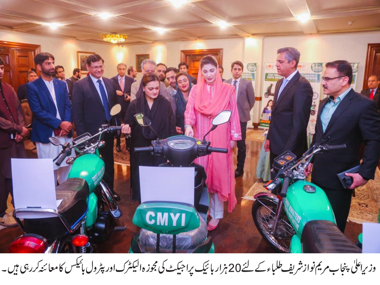 وزیر اعلیٰ مریم نواز شریف نے طلباءکے لئے مجوزہ الیکٹرک اور پٹرول بائیکس کا معائنہ کیا۔