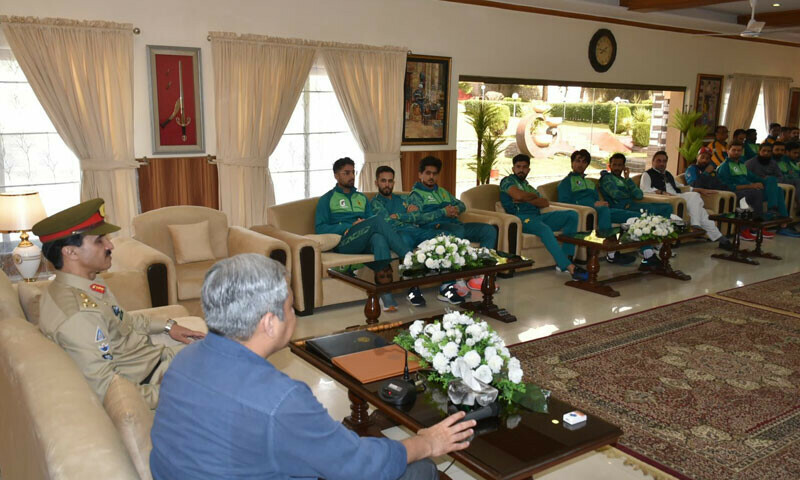 پاکستان کرکٹ بورڈ (پی سی بی) کے چیئرمین محسن نقوی نے پاکستان ملٹری اکیڈمی کاکول ایبٹ آباد میں پاک فوج کے زیر نگرانی جاری ٹریننگ کیمپ میں کھلاڑیوں سے ملاقات کی،