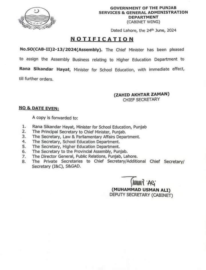 قومی لاہور(ٹی این ایس) وزیر تعلیم پنجاب رانا سکندر حیات کو وزیر ہائر ایجوکیشن کا قلمدان بھی سونپ دیا گیا، نوٹیفیکیشن By TNS World - June 25, 2024 10:17 pm 0 98 Share on Facebook Tweet on Twitter لاہور وزیر تعلیم پنجاب رانا سکندر حیات کو وزیر ہائر ایجوکیشن کا قلمدان بھی سونپ دیا گیا، نوٹیفیکیشن