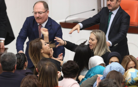 ترک پارلیمنٹ کے آج ہونے والے اجلاس میں حکومتی اور اپوزیشن اراکین کے درمیان جھگڑے میں لاتوں اور مکوں کا آزادانہ استعمال ہوا۔غیر ملکی خبر ایجنسی کی جانب سے جاری کی جانے والی ویڈیو میں دیکھا جاسکتا ہے کہ اپوزیشن کے رکن پارلیمنٹ احمد سک تقریر کررہے ہیں جس دوران حکومتی اراکین ان کی جانب بڑھتے ہیں۔