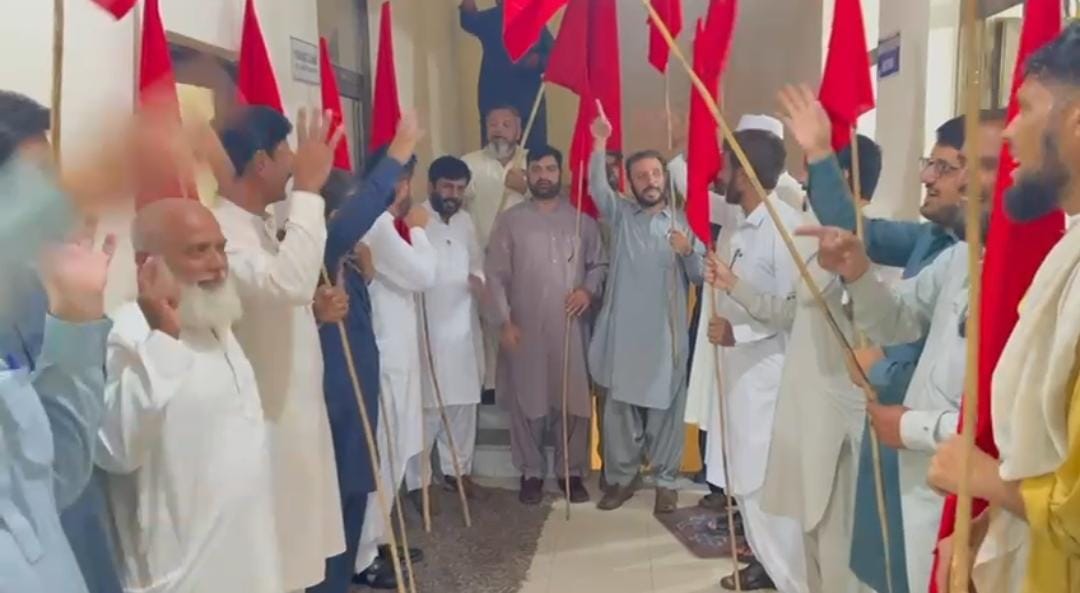 زونل چیئرمین کنسٹرکشن اسلام اباد داؤد گل صاحب اور دیگر قائدین نعروں اور تقاریر سے مظاہرین کا جوش گرماتے