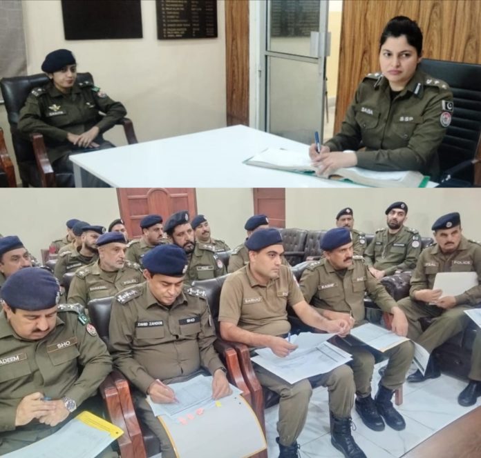 راولپنڈی ( ) ایس ایس پی انوسٹی گیشن صبا ستار کی ایس ڈی پی او صدر آفس میں صدر سرکل کے افسران سے میٹنگ، میٹنگ میں اے ایس پی صدر سرکل،ایس ایچ اوز اور تفتیشی افسران کی شرکت، ایس ایس پی انوسٹی گیشن نے زیر تفتیش مقدمات کی پراگرس کا جائزہ لیا اور ہدایات دیں، ایس ایس پی انوسٹی گیشن نے تھانہ صدر بیرونی کا بھی دورہ کیا،تھانہ کے ریکارڈ، بلڈنگ، حوالات سمیت دیگر متعلقہ اُمور کا تفصیلی جائزہ لیا۔تفصیلات کے مطابق ایس ایس پی انوسٹی گیشن صبا ستار نے ایس ڈی پی او صدر آفس میں صدر سرکل کے افسران سے میٹنگ کا انعقاد کیا، کرائم میٹنگ میں اے ایس پی صدر سرکل،ایس ایچ اوز اور تفتیشی افسران نے شرکت کی، ایس ایس پی انوسٹی گیشن نے زیر تفتیش مقدمات کی پراگرس کا جائزہ لیا اور افسران کو ہدایات دیں، ایس ایس پی انوسٹی گیشن نے تھانہ صدر بیرونی کا بھی دورہ کیا،تھانہ کے ریکارڈ، بلدنگ، حوالات سمیت دیگر متعلقہ اُمور کا تفصیلی جائزہ لیا،ایس ایس پی انوسٹی گیشن صبا ستار نے افسران کو ہدایات دیتے ہوئے کہا کہ زیر تفتیش مقدمات میں ملوث ملزمان کو جلد گرفتار کرکے میرٹ پر یکسو کیا جائے، منظم و متحرک گینگز کے خلاف بھرپور کاروائیاں کی جائیں،منشیات کے ناسور کے خاتمے کے لیے کریک ڈاؤن میں تیزی لائی جائے، تھانوں کی صفائی،شہریوں کو بہترین ماحول کی فراہمی اور سروس ڈیلیوری پر خصوصی فوکس کریں،تھانہ کی سطح پر شہریوں کے مسائل کا حل اولین ترجیح ہے، تھانہ میں آنے والے شہریوں سے خوش اخلاقی سے پیش آتے ہوئے ان کے مسائل ترجیح بنیادوں پر حل کیے جائیں،راولپنڈی پولیس شہریوں کو سہولیات کی فراہمی کے ساتھ ساتھ جان و مال کے تحفظ کے لیے 24/7 مصروف عمل ہے۔