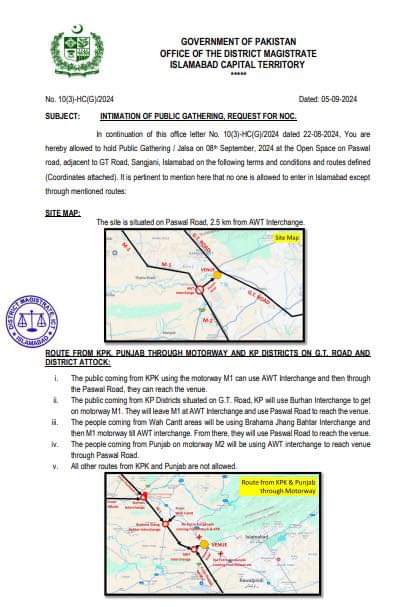 قومیاسلام آباد اسلام آباد(ٹی این ایس) پی ٹی آئی کو اسلام آباد میں جلسہ کی اجازت مل گئی۔ By TNS World - September 6, 2024 11:23 pm 0 102 Share on Facebook Tweet on Twitter اسلام آباد پی ٹی آئی کو اسلام آباد میں جلسہ کی اجازت مل گئی۔ سنگجانی کے مقام پر جلسہ کرنے کا این او سی جاری