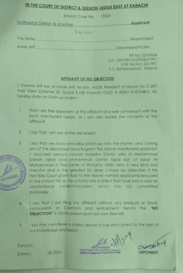 قومی کراچی(ٹی این ایس) کارساز حادثہ کیس میں بڑی پیشرفت، نتاشا دانش کی فیملی اور جاں بحق باپ بیٹی کے اہلخانہ کے درمیان معاہدہ طے پا گیا By TNS World - September 7, 2024 10:24 pm 0 97 Share on Facebook Tweet on Twitter کراچی کارساز حادثہ کیس میں بڑی پیشرفت، نتاشا دانش کی فیملی اور جاں بحق باپ بیٹی کے اہلخانہ کے درمیان معاہدہ طے پا گیا مبینہ ساڑھے 5 کروڑ روپے سے زائد دیت کے طور پر رقم ادا کر دی گئی۔ایک رشتہ دار کو ملازمت دی جائیگی،