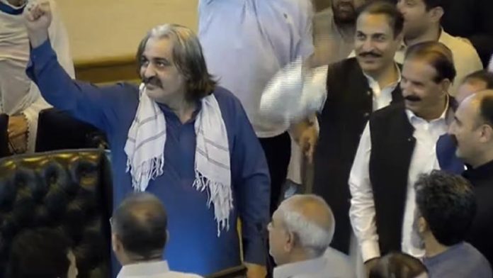 گذشتہ چوبیس گھنٹوں سے غائب وزیراعلی علی امین گنڈا پور اچانک خیبرپختونخوا اسمبلی پہنچ گئے۔اسمبلی میں اظہار خیال کرتے ہوئے انہوں نے کہا کہ بانی پی ٹی آئی عمران خان قوم کی جنگ لڑ رہے ہیں، مجھے اپنے ہا ئو س اور ارکان پر فخر ہے، عوام عمران خان کے ساتھ کھڑے ہیں۔وزیراعلی خیبرپختونخوا نے کہا کہ میں خیبر پختونخوا ہاس میں ہی تھا، انہوں نے 4 چھاپے مارے، خیبرپختونخوا ہاس چائے کے لیے گیا تھا، آئی جی اسلام آباد رینجرز کے ساتھ آیا اور وہاں کے پی ہاس میں شیلنگ اور فائرنگ کی گئی۔