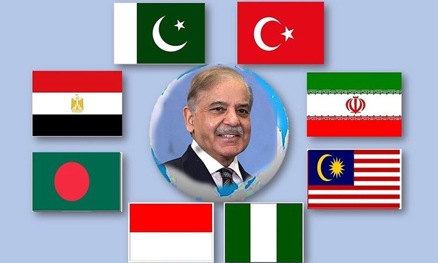 D-8 ترقی پزیر مسلم ممالک کا ایک اتحاد ہے جو اقتصادی ترقی کے لیے متحد ہوئے ہیں۔ 1997ء میں اپنے قیام کے وقت یہ ممالک مشترکہ طور پر دنیا کی کل آبادی کا 13.5 فیصد تھے۔ اس کے اراکین میں انڈونیشیا، ایران، بنگلہ دیش، پاکستان، ترکی، مصر، ملائیشیا اور نائجیریا شامل ہیں۔ترکیہ، بنگلہ دیش، مصر، ایران، انڈونیشیا، ملائیشیا اور نائجیریا پر مشتمل 11 ویں ڈی8 کانفرنس کا موضوع ’انوسٹنگ اِن یوتھ اینڈ اسپورٹنگ ایس ایم ایز : شیپنگ ٹوماروز اِکونومی‘ رکھا گیا ہے۔ وزیر اعظم پاکستان محمد شہباز شریف 18 سے 19دسمبر تک قاہرہ میں منعقد ہونے والے ترقی پذیر آٹھ ممالک کے 11ویں سربراہی اجلاس میں پاکستانی وفد کی قیادت کرنے کے لیے مصر کے سرکاری دورے پر قاہرہ پہنچ گئے۔ عرب جمہوریہ مصر کے وزیر برائے پبلک بزنس سیکٹر محمد شیمیی اور قاہرہ میں پاکستانی سفارت خانے کے عملے نے ہوائی اڈے پر وزیراعظم کا استقبال کیا۔ تنظیم کا مقصد رکن ممالک کے درمیان اقتصادی تعاون کو بڑھانا ہے تاکہ اقتصادی ترقی کو فروغ دیا جا سکے اور زراعت، تجارت، نقل و حمل، صنعت، توانائی اور سیاحت میں بہتری لانے اور تعاون بڑھانے پر توجہ مرکوز کرتے ہوئے معیار زندگی کو بہتر کیا جائے۔ 11ویں ڈی ایٹ (D-8 ) سمٹ کا موضوع “نوجوانوں میں سرمایہ کاری اور اسمال میڈیم اینٹر پرائز کو فروغ دینا : کل کی معیشت کی تشکیل ” ہے۔ سربراہی اجلاس میں وزیراعظم ایک مضبوط اور جامع معیشت کی تشکیل کے لیے نوجوانوں اور اسمال اینڈ میڈیم اینٹر پرائز میں سرمایہ کاری کی اہمیت پر گفتگو کریں گے۔ وزیر اعظم مشرق وسطیٰ میں اسرائیلی جارحیت کے نتیجے میں پیدا ہونے والی صورتحال پر غور و خوض کے حوالے سے غزہ اور لبنان میں انسانی بحران اور تعمیر نو کے چیلنجز پر D-8 کے خصوصی سربراہی اجلاس میں بھی شرکت کریں گے۔ تنظیم کی ویب سائٹ کے مطابق ڈی 8 اقتصادی تعاون کی تنظیم ہے، اس کے ممبر ممالک میں پاکستان، مصر، بنگلہ دیش، ملائیشیا، نائجیریا، انڈونیشیا، ایران اور ترکیہ شامل ہیں۔وزیر اعظم آفس کے میڈیا ونگ سے جاری بیان کے حوالے سے رپورٹ کیا کہ وزیراعظم محمد شہباز شریف قاہرہ میں’آئندہ کل کی معیشت کے لیے نوجوانوں، چھوٹے و درمیانے طبقےکے کاروبار میں سرمایہ کاری’ کے موضوع پر منعقدہ ڈی 8 کے 11 ویں سربراہی اجلاس میں شرکت کریں گے۔مزید رپورٹ کیا کہ شہباز شریف سربراہی اجلاس میں پاکستان کی نمائندگی کرتے ہوئے روزگار کی فراہمی، جدت کے فروغ اور مقامی کاروبار کی ترویج کی بنیادوں پر مضبوط اور شراکت داری پر مبنی معیشت کے لیے نوجوانوں، چھوٹے و درمیانے طبقے کے کاروبار (ایس ایم ایز) میں سرمایہ کاری کی اہمیت کو اجاگر کریں گے۔