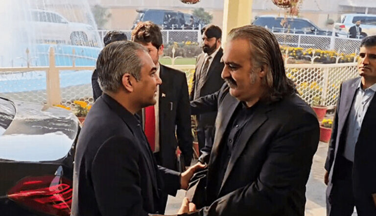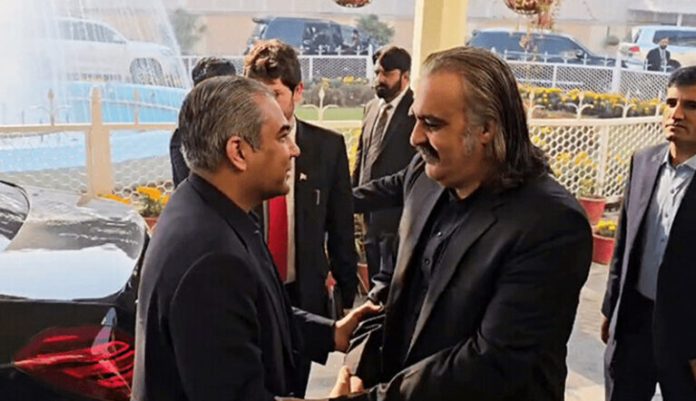پشاور(آئی پی ایس)وفاقی وزیر داخلہ محسن نقوی نے ایوان وزیراعلیٰ پشاور کا دورہ کرکے وزیراعلیٰ خیبرپختونخواہ علی امین گنڈا پور سے ملاقات کی ہے، وزیراعلی خیبرپختونخوا علی امین گنڈاپور نے وفاقی وزیرداخلہ محسن نقوی کا خیر مقدم کیا۔
