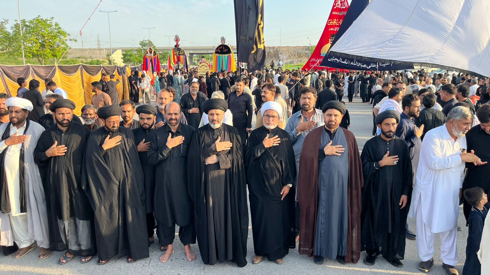 اسلام آباد (ٹی این ایس)(مظہر شاہ ) 28محرم الحرام کا مرکزی جلوس امام بارگاہ قصرامام المنتظرعہ حیدری أباد ڈی ایچ اے2سے برآمد ۔اختتام پر بانی مجلس غلام اصغر حیدری سمیت حیدری برادران کی طرف سے اسلام آباد انتظامیہ پولیس کو اظھار تشکر ۔ تفصیلات کے مطابق ڈی ایچ اے فیز 2 سے ملحقہ مین ایکسپریس وے پر سالانہ قدیمی جلوس علم غازی عباس علمدار عہ ذوالجناح امام حسین علیہ اسلام حاجی غلام اصغر حیدری کے گھر سے برأمد ہوکر حسب سابق رواٸتی راستوں مین ایکسپریس وے سے ہوتا ہوا امام بارگاہ ھذا میں اختتام پذیرہوا مرکزی جلوس میں شبیہ ذوالجناح علم پاک تابوت امام سجاد عہ بھی برأمد ہوا جلوس کی قیادت سربراہ تحریک نفاذفقہ جعفریہ پاکستان أغاسید حسین مقدسی سکریٹری جنرل ٹی این ایف جے علامہ بشارت امامی علماٸے کرام ذاکرین ملک بھر سے ماتمی دستوں سنگتوں عماٸدین ملت جعفریہ عزادران امام حسین عہ سادات مومنین نے بڑی تعداد میں شرکت کی اور شہداٸے کربلاء کی عظیم قربانی کوخراج تحسین پیش کیا اس موقع پر بانی مجلس حاجی غلام اصغر حیدری اور حیدری برادران نے اسلام انتظامیہ پولیس علماٸے کرام ذاکرین عزادران امام حسین عہ سادات مومنین سے اظہارتشکر کیا