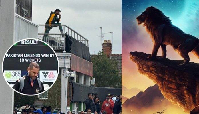 تاہم سوشل میڈیا پر ویڈیو اور تصاویر تیزی سے وائرل ہورہی ہیں جس میں بھارتی ٹیم میدان چھوڑ کر جارہی ہے اور شاہد آفریدی اوپر ڈریسنگ روم کی بالکونی میں آرام سے کھڑے ہیں۔مذکورہ تصویر میں شاہد آفریدی کچھ اس انداز میں پویلین میں کھڑے ہیں کہ ان کے صارفین ان کا موازنہ لائن کنگ سے کر رہے ہیں۔