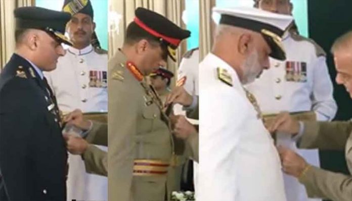 اسلام آباد (ٹی این ایس) صدرِ مملکت آصف علی زرداری نے آپریشن بنیان مرصوص کے دوران شاندار جرات، بہادری اور قربانیوں کا مظاہرہ کرنے والے مسلح افواج کے افسران اور جوانوں کو اعلی فوجی اعزازات سے نوازا ہے،8افسران کو ستارہ جرات، 5 کو تمغہ جرات اور 24 کو ستارہ بسالت عطا کیے گئے ،صدرِ مملکت نے مزید 45 افسران و جوانوں کو تمغہ بسالت سے نوازا۔