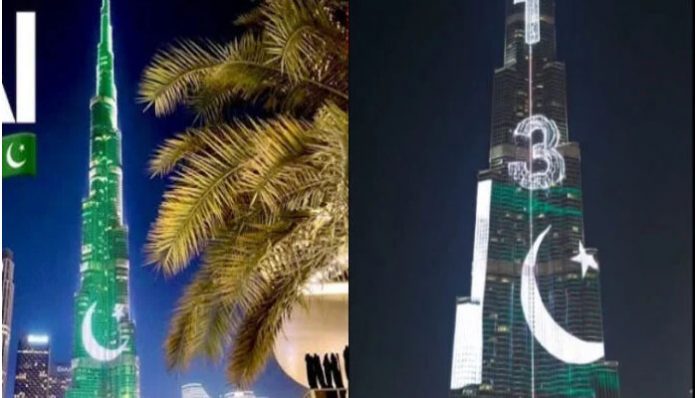 متحدہ عرب امارات کی ریاست دبئی میں بھی یوم آزادی کا جشن بھرپور طریقے سے منایا گیا اور برج خلیفہ پر سبز ہلالی پرچم جگمگاتا دیکھ کر پاکستانی بھی پرجوش نظر آئے۔