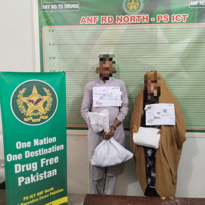 ایکسپریس وے اسلام آباد پر خاتون سمیت ملزم سے 6 کلو چرس برآمد، ملزمان گرفتار۔