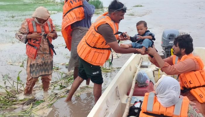 ترجمان ریسکیو پنجاب نے ایک بیان میں بتایا کہ انسانی انخلا دریائے سندھ، چناب، راوی، ستلج اور جہلم کے ملحقہ علاقوں سے کیا گیا۔ دریائے ستلج میں گنڈا سنگھ والا کے مقام پرپانی کا بہا 1 لاکھ 95 ہزار کیوسک سے بڑھ گیا ہے، ہیڈ سلیمانکی کے مقام پر درمیانے درجے کا سیلاب ہے، سلیمانکی کے مقام پر پانی کی آمد 1 لاکھ 4 ہزاراور اخراج 98 ہزارکیوسک ہے۔دریائے راوی میں جسڑ کے مقام پر پانی کا بہا 90 ہزار کیوسک ہے یعنی درمیانے درجے کا سیلاب ہے، دریائے راوی میں شاہدرہ کے مقام پر پانی کا بہا 40 ہزار کیوسک ریکارڈ کیا جارہا ہے جو نچلے درجے کا سیلاب ہے، آج رات شاہدرہ سے 60 سے 70 ہزار کیوسک پانی کا ریلا گزرے گا، بلوکی 27 ہزار اور ہیڈ سدنائی میں پانی کا بہا 12 ہزار کیوسک ہے۔دریائے چناب خانکی میں پانی کی آمد 91 ہزار اور اخراج 84 ہزار ہے، ہیڈ مرالہ کے مقام پر اونچے درجے کا سیلاب آ گیا، پانی کا بہا 2 لاکھ 98 کیوسک ریکارڈ ہوا جبکہ اخراج 1 لاکھ 82 ہزار کیوسک ہے، پانی کی سطح مسلسل بڑھ رہی ہے جبکہ بھارت کی جانب سے 3 لاکھ کیوسک کے سیلابی ریلے کی آمد کا خدشہ ہے جس کے پیش نظر لوگوں کی نقل مکانی کے لیے مساجد میں اعلانات کیے جا رہے ہیں۔