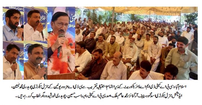 سی بی اے کمیٹی ڈی ایم اے ڈائریکٹوریٹ کے زیر اہتمام استقبالیہ تقریب سے قائدین مزدور یونین کا خطاب۔