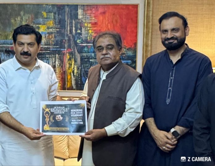 لاہور (ٹی این ایس) پیرسیدسہیل بخاری چئیرمین ایوارڈزکمیٹی 28 ، ویں ایشین ایکسی لینس پرفارمنس ایوارڈز برائے بہترین رئیل اسٹیٹ مارکیٹنگ کیلئے چوہدری عبدالروف چئیرمین فئیرگروپ کو ایوارڈ سلیکشن کا دعوت نامہ پیش کر رھے ہیں – ساتھ اعجاز احمد سی ای او فئیر ڈیل مارکیٹنگ لاہور ہیں –