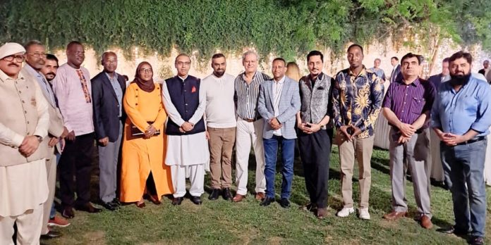 اسلام آباد (ٹی این ایس) ایڈیشنل سیکرٹری برائے افریقہ دفتر خارجہ حامد اصغر خان نے غیر ملکی سفیروں اور دیگر اہم شخصیات کے اعزاز میں اپنی رہائش گاہ پر ایک گرینڈ عشائیہ دیا اس سفارتی عشائیہ میں سری لنکا قازقستان میانمار کینیا سوڈان روانڈا سومالیہ زمبابوے اور ایتھوپیا کے سفیروں نے خصوصی طور پر شرکت کی حامد اصغر خان نے تمام مہمانوں کا خود استقبال کیا یہ ایک منفرد عشائیہ کی تقریب تھی جس غیر ملکی سفیروں کے ساتھ ساتھ سول اور فوجی اعلیٰ حکام اور ممتاز کاروباری شخصیات نے کثیر تعداد میں شرکت کی رکن قومی اسمبلی اسفند یار بھنڈارا سابق وفاقی وزیر دانیال عزیز وفاقی سیکرٹری جودت ایاز سابق سیکرٹری عارف عظیم سابق ایم ڈی پی ٹی وی مبشر توقیر میجر جنرل ضیاء شہباز ظہیر طارق سلیم گھانا کے اعزازی جنرل کونسل عمر شاہد بٹ برگیڈیئر سجاد برگیڈیئر کاظم برگیڈیئر علی برگیڈیئر منصور ائیر کموڈور نوشیر خان سید نعمان شاہ ڈاکٹر باسط حسن بیگ حبیب الرحمان عدنان چیمہ فیصل خان نعمان محمود عمار رشید سید حسنین حیدر امجد ہاشمی عاصم خان گورائیہ سئنیر صحافی فیصل زاہد ملک ملک منظور احمد اور دیگر اہم شخصیات نے بڑی تعداد میں شرکت کی ایڈيشنل سيكرٹری دفتر خارجہ حامد اصغر خان،کی طرف سے اپنی رہشگاہ پر دیے گۓ عشایے کے موقع پر ایتھوپیا،كينيا،روانڈا،سوڈان،زمبابوے،صومالیہ،میانمار،سری لنکا،ازبكستان,صدر راولپنڈی چیمبر ،اور ديگر ممالک کے سفراہ کے ہمراہ گروپ فوٹو