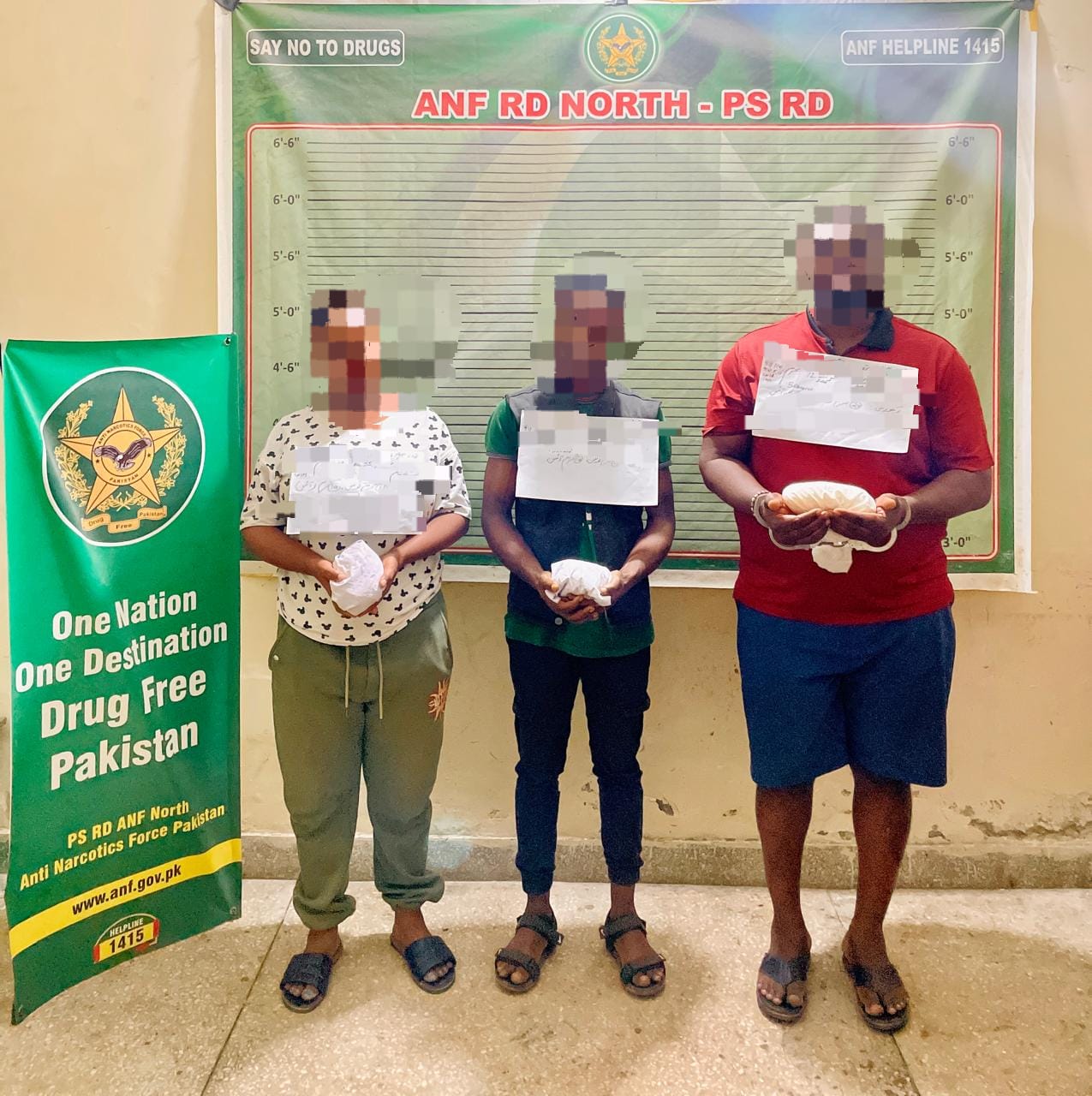 بیلا روڑ اسلام آباد کے قریب 1 خاتون سمیت 3نائجیرین باشندوں کے قبضے سے 700 گرام آئس اور 50 گرام کوکین برآمد ۔ملزمان گرفتار