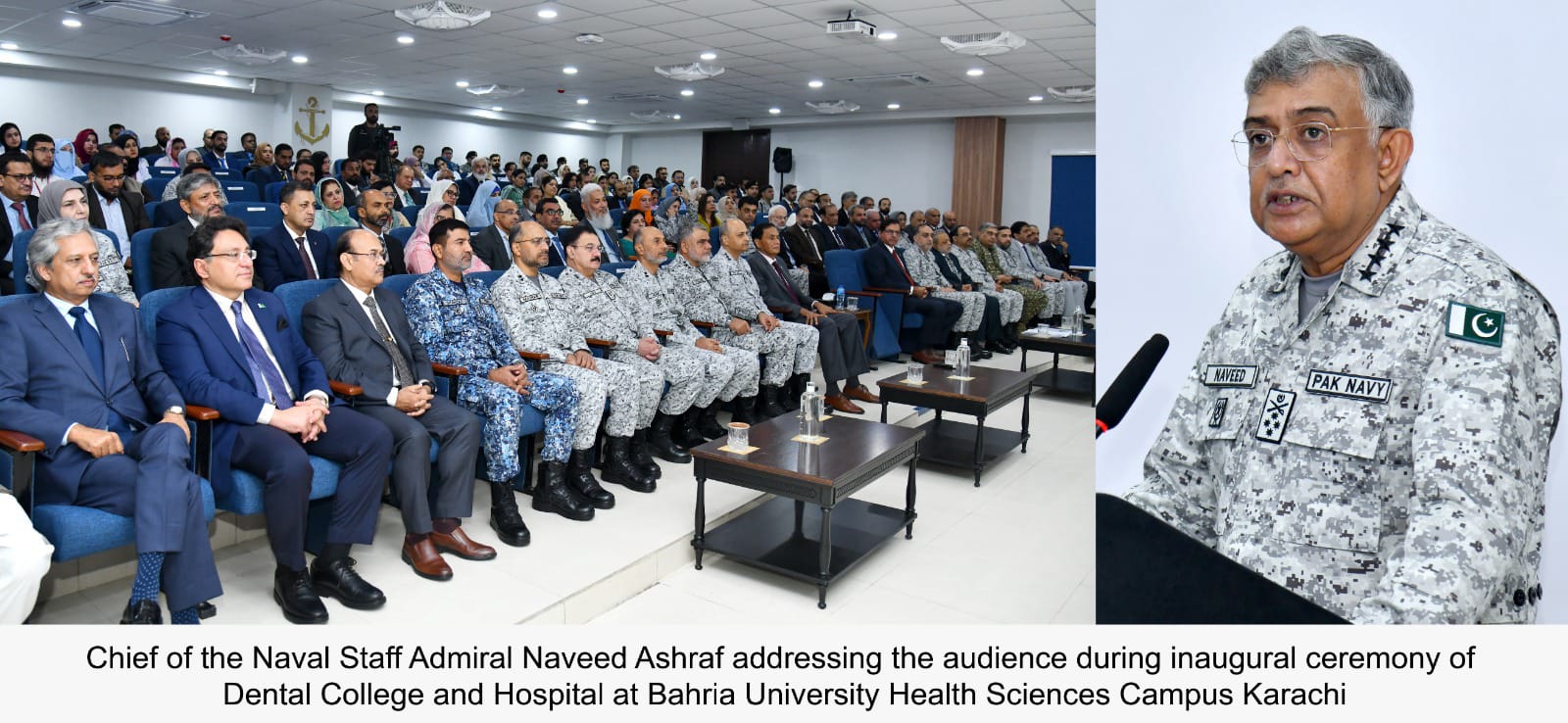 تقریب سے خطاب کرتے ہوئے نیول چیف نے جدید سہولیات سے آراستہ اس عمارت کے قیام پر اطمینان کا اظہار کیا اور صحت عامہ کے فروغ میں بحریہ یونیورسٹی کی کاوشوں کو سراہا۔ اُن کا کہنا تھا کہ یہ ادارہ اخلاقی اقدار اور پیشہ ورانہ مہارت سے لیس ڈینٹل ماہرین تیار کرنے کی بھرپور صلاحیت رکھتا ہے جو قومی خدمت کے جذبے سے سرشار ہوں گے۔