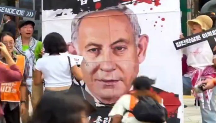 اسلام آباد (ٹی این ایس) دنیا بھر میں اسرائیلی جارحیت کے خلاف مظاہرے جاری ہیں وہیں جنوبی کوریا میں نیتن یاہو کی تصویر کو جوتے مارے گئے ہیں۔