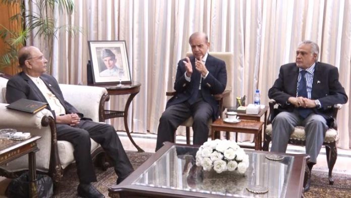 اسلام آباد (ٹی این ایس)(آئی پی ایس ) وزیرِاعظم شہباز شریف کی صدر مملکت آصف علی زرداری سے ملاقات ہوئی۔دونوں رہنماں کے درمیان ملاقات میں ملک کی سیاسی و سکیورٹی صورتحال پر تبادلہ خیال کیا گیا، وزیرِاعظم نے صدرِ مملکت کو اپنے دورہ مصر اور ملائیشیا کے بارے میں آگاہ کیا۔ملاقات میں نائب وزیراعظم اسحاق ڈار، مشیر وزیر اعظم رانا ثنا اللہ، وفاقی وزرا احسن اقبال، اعظم نذیر تارڑ، وفاقی وزیر داخلہ محسن نقوی، شیری رحمان و دیگر بھی شریک ہوئے۔صدر آصف علی زرداری اور وزیرِاعظم شہباز شریف کی ون آن ون ملاقات بھی ہوئی جس میں دونوں رہنماں نے قومی اہمیت کے معاملات پر سیاسی مشاورت جاری رکھنے پر اتفاق کیا۔