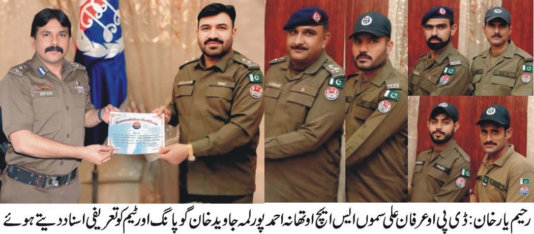 رحیم یارخان (ٹی این ایس)/ کامیاب پولیس مقابلہ پر ڈی پی او عرفان علی سموں کا ایس ایچ او احمد پور لمہ جاوید خان گوپانگ اور ٹیم کو 1 لاکھ روپے نقد انعام تعریفی اسناد سے بھی نوازا، تھانہ احمدپور لمہ پولیس نے ملتان کے مغوی جنید گوپانگ کو بحفاظت بازیاب کروا کے ورثاء کے 20 لاکھ بچائے دو ڈاکوؤں کو مقابلہ میں زخمی کیا اور اغواء کارروں کی موٹر سائیکل بھی قبضہ میں لی۔*