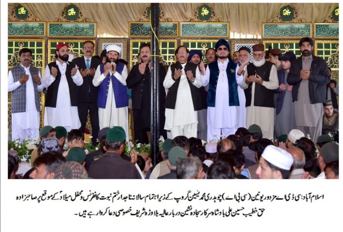 انھوں نے کہا کہ رب العزت نے یہ کائنات اپنے محبوب سرورکائنات ؐ کے لیے تخلیق کی اور سی ڈی اے مزدور یونین کو یہ اعزاز بخشا کہ ہر سال اللہ تعالیٰ کے پیارے حبیب حضوراکرمؐ کا میلاد مناتے ہیں اور اسی کے صدقے اللہ تعالیٰ نے ہمیشہ سی ڈ ی اے مزدور یونین کو اپنے محنت کشوں کے لیے بہتر سے بہتر طور پر کام کرنے کا موقع فراہم کیا اور انشاء اللہ آئندہ بھی پہلے سے بڑھ کر سی ڈی اے ملازمین کی فلاح و بہود کے لیے اپنی جدوجہد جاری رکھیں گے،پروگرام کے اختتام پر صاحبزادہ حق خطیب حسین علی بادشاہ سرکار سجادہ نشین دربار عالیہ بلاوڑہ شریف نے ملکی سالمیت، ادارے کی ترقی اورسی ڈی اے مزدور یونین کے درینہ ساتھی ملک فیصل مرحوم کی روح کے ایصال ثواب کے لیے دعا کروائی۔
